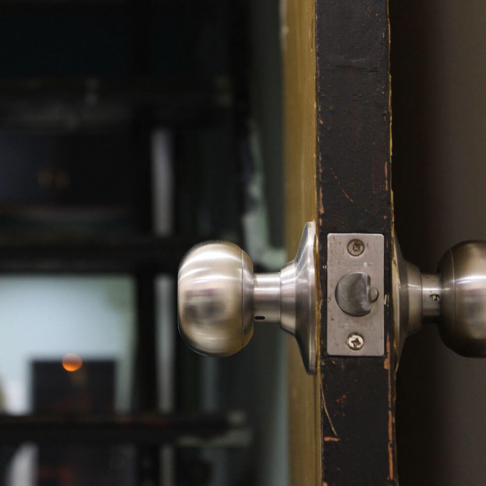 Storeroom function knob and lever locks look just like entry locks. However, they have no button on the inside. You can always exit freely, and the exterior is always locked, requiring the use of a key to operate the lock every time. These locks are generally used for secondary entrances and secure areas that need to be locked at all times.